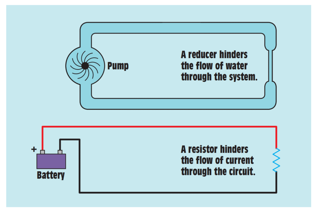 All electric loads, such as heating elements, lamps, motors, transformers, and so on, are measured in ohms. In a water system, a reducer can be used to control the flow of water; in an electric circuit, a resistor can be used to control the flow of electrons.